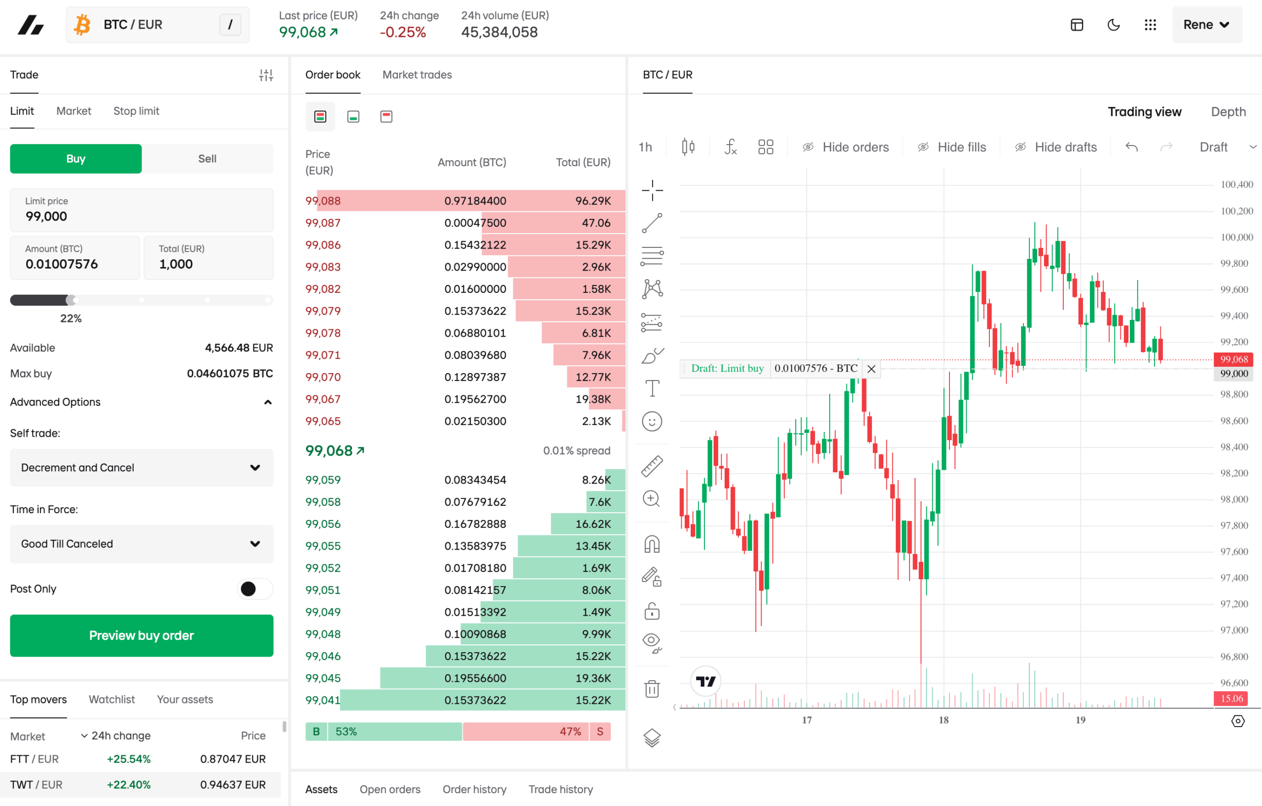 By entering Renetoday as your referral code when signing up for Bitvavo, you’ll receive a €20 bonus in Bitcoin (BTC) if you trade €100 or more during the first 7 days after registration.