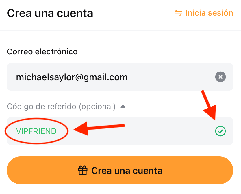 Un código de referido en Bybit es una especie de código de descuento y bonificación que introduces al crear una cuenta. Con él obtienes bonos de bienvenida, descuentos en comisiones y acceso a recompensas adicionales. Sin código de referido, puedes crear una cuenta, pero pierdes estas ventajas.